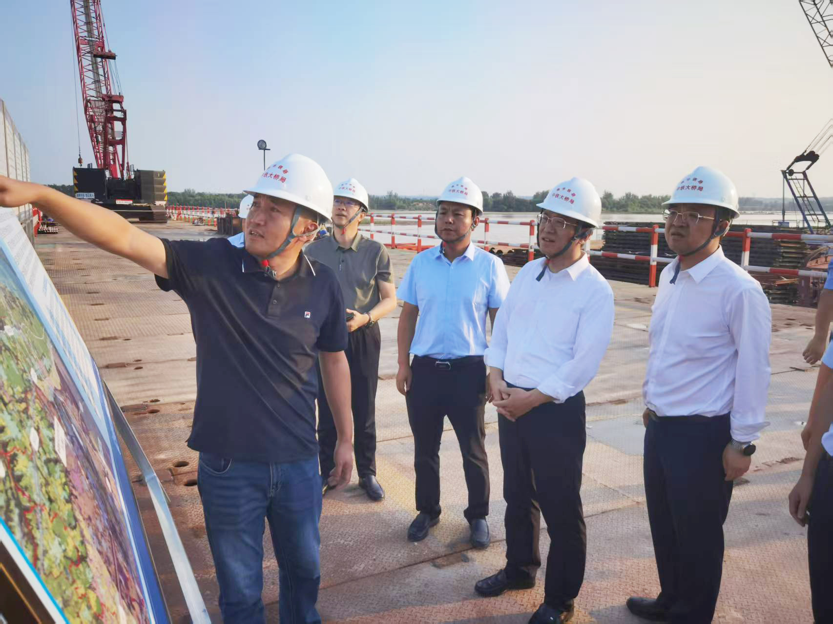 8月2日,河南鐵建投集團(tuán)黨委書記、董事長悅國勇深入焦洛平高鐵黃河公鐵大橋建設(shè)現(xiàn)場調(diào)研,并看望慰問一線建設(shè)者。洛陽市副市長王太鋼參加調(diào)研。